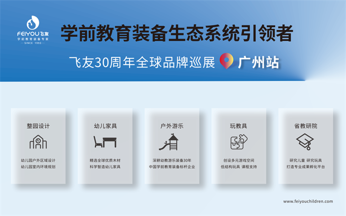 飛友30周年全球品牌巡展·南昌站——五大板塊整裝亮相!Vol.1/ 觀展時間4月21日 - 4月23日Vol.2/ 展會地點南昌綠地國際博覽中心紅谷淮新區(qū)懷玉山大道1315號Vol.3/ 飛友館A1012學(xué)前教育裝備生態(tài)系統(tǒng)引領(lǐng)者本次飛友30周年全球品牌巡展,首次集成“整園設(shè)計、幼兒家具、戶外游樂、玩教具、省教研院”五大板塊整裝亮相,將充分展示飛友在學(xué)前教育2023-04-12 -