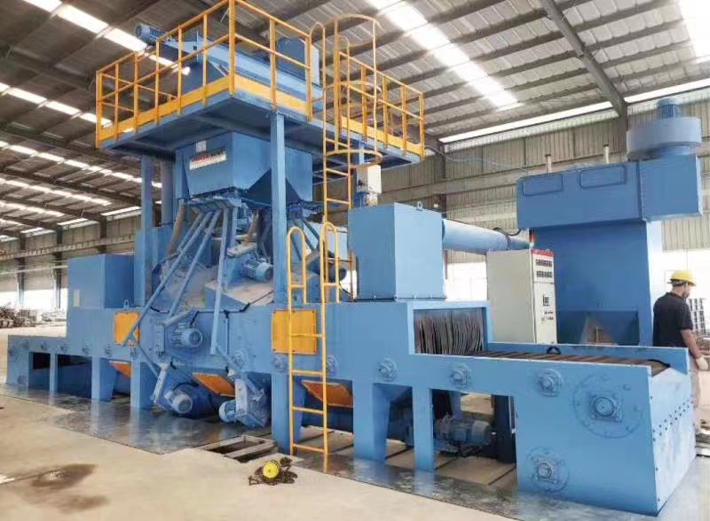 非標(biāo)拋丸機(jī)(非標(biāo)拋丸設(shè)備,非標(biāo)拋丸機(jī)械):在處理線工藝是指的鋼材在加工前(既原材料的狀態(tài))去進(jìn)行表面拋丸除銹并涂上一層保護(hù)底漆的加工工藝。但凡鋼材是經(jīng)過(guò)預(yù)先處理的,都能有效的可以提高機(jī)械產(chǎn)品和金屬構(gòu)件的抗腐蝕性,提高鋼板的抗疲勞性能,延長(zhǎng)其使用壽命:同時(shí)還可以優(yōu)化鋼材表面工藝制作狀態(tài),非常有利于數(shù)控和切割機(jī)下料以及精密落料,大大的改善工作的疲勞強(qiáng)度和對(duì)環(huán)境的污染。此外,由于鋼材在加工前其形狀比較規(guī)則,有利于機(jī)械除銹和自動(dòng)化噴漆,因此采用鋼材預(yù)處理可大大提高清理工作的 效率,減輕清理工作的勞動(dòng)強(qiáng)度和對(duì)環(huán)境的污染。正因?yàn)槿绱耍摪孱A(yù)處理工藝不僅在工藝發(fā)達(dá)國(guó)家已推廣應(yīng)用,而且在國(guó)內(nèi)引起眾多行業(yè)的日益重視,不少企業(yè)已把鋼材預(yù)處工藝提到企業(yè)技術(shù)改造的議事當(dāng)中。