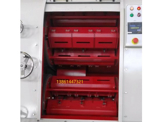 離心研磨拋光機的原理:采用行星傳動方式,利用離心運動原理。有4個角滾筒裝載于料斗中(料斗固定裝載在轉(zhuǎn)動盤上)當(dāng)轉(zhuǎn)動盤轉(zhuǎn)動時,滾筒以逆方向轉(zhuǎn)動。將工件、研磨石、水與拋光助劑放進滾筒后,將滾筒予以固定時,物體被離心力轉(zhuǎn)動,此時物體受滾筒槽的強壓力,從而使得工件與磨料、助劑產(chǎn)生快速、均勻的摩擦;達(dá)到表面處理的要求??焖傺心ス怙棌亩WC工件原有形狀、尺寸不受變化。